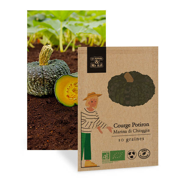 Le potiron Marina du Chioggia est visuellement très impressionnant et tout aussi savoureux ! Sa peau verte épaisse et granuleuse présente des reflets gris bleu.