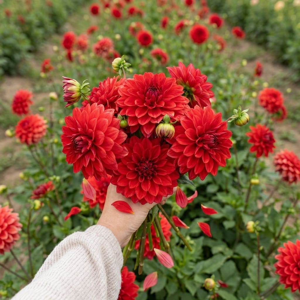 Le dahlia heatwave est un magnifique dahlia décoratif de taille moyenne à fleurs rouge flamboyant !